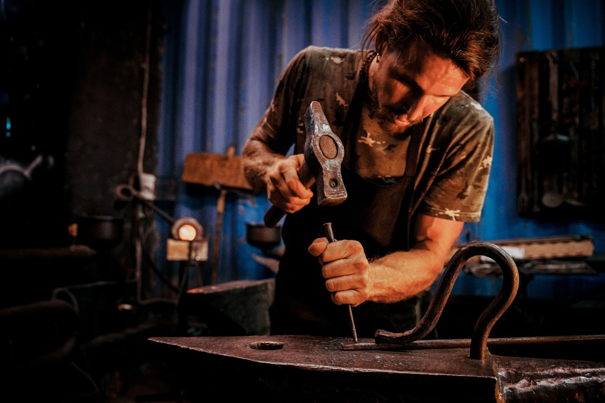 - об истории ремесла и инструментах, о силе и ритме работы с металлом