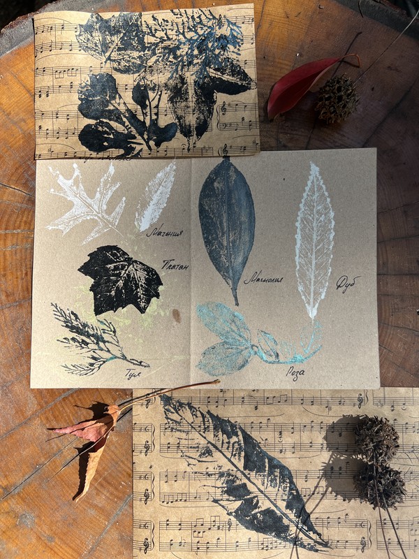 - Память о юге — после мастер-класса вы увезёте с собой оттиск крупноцветковой магнолии, резную «ладонь» инжира или редкий отпечаток гинкго билоба — реликтового дерева, пережившего миллионы лет. Каждый участник изготовит не менее 3 открыток с оттисками