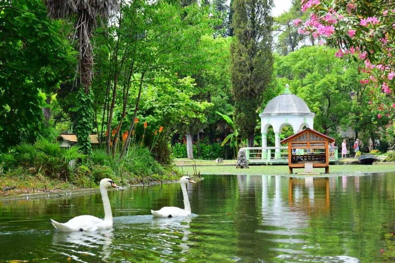 Здесь — парк с лебединым озером, рукотворный водопад, Новоафонский монастырь и пещера, куда вы заглянете по желанию.