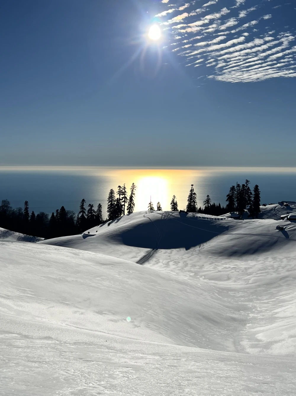 " За один день вы побываете сразу в двух странах, смените несколько форматов и множество пейзажей. Начнём путешествие в России, а продолжим в Абхазии: сначала на внедорожниках, затем на снегоступах — по лесным тропам к вершине Мамдзышхи. Вас ждут панорамы Чёрного моря, Сириуса и гор Кавказа, движение, тишина и ощущение настоящего горного путешествия. "