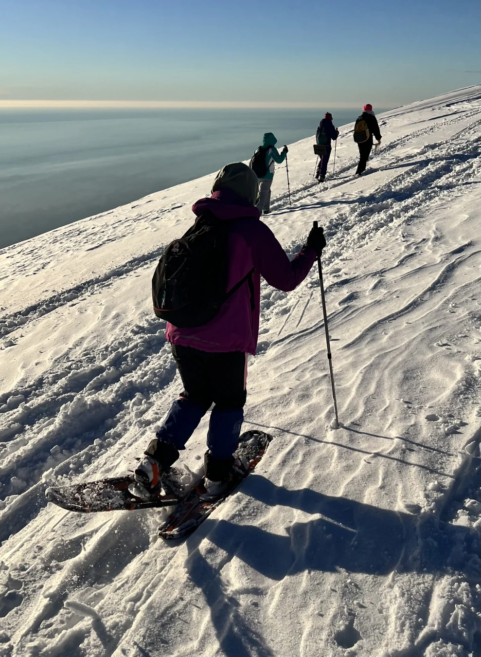- Перед началом программы вы получите экипировку: снегоступы высокого уровня и треккинговые или лыжные палки