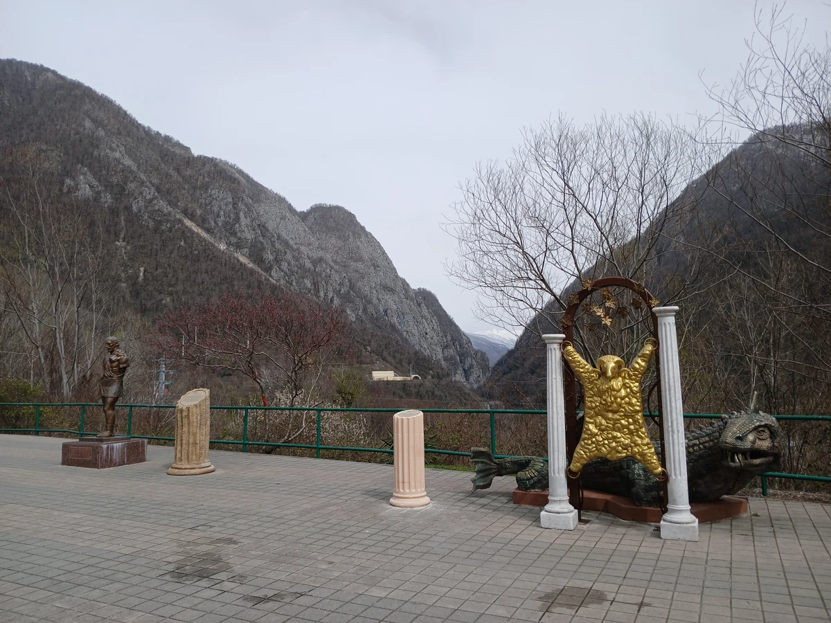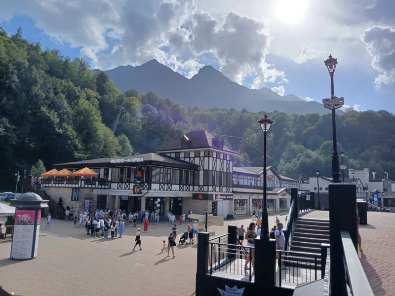 Путь в горный кластер украсят великолепные пейзажи. Вы полюбуетесь панорамами ущелья Ахцу и видом со смотровой площадки у комплекса трамплинов «Русские горки». Я подскажу, где можно вкусно пообедать в горном кластере.