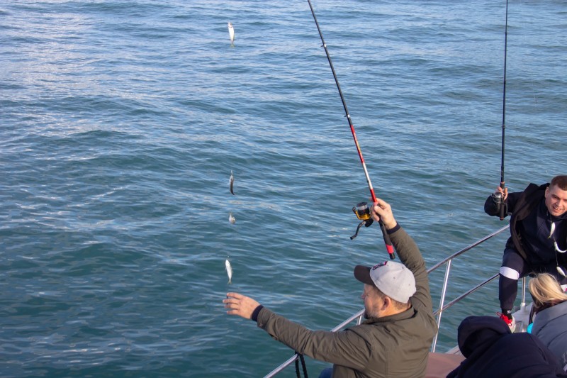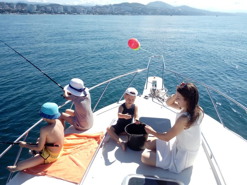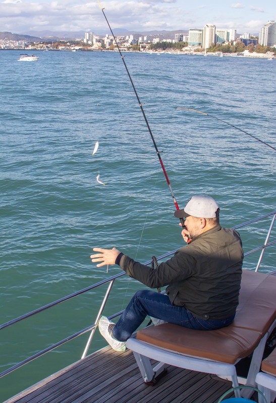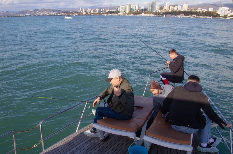 " Морская прогулка с рыбалкой — идеальный способ отведать самой свежей рыбки, ведь всё, что мы поймаем, можно будет приготовить прямо на борту. К тому же мы отойдём от берегов на такое расстояние, что, с одной стороны, есть шанс увидеть дельфинов в прозрачной воде, с другой — вам откроется отличная панорама Сочи и горы за ним. "