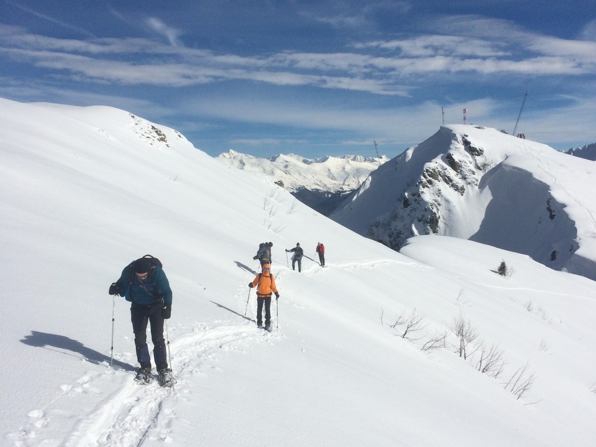 - Мы предоставим вам всё необходимое снаряжение: снегоступы, треккинговые палки, рюкзак для личных вещей, коврик-сидушку, лавинный датчик (биппер), лавинный щуп и лопату. Горячий чай также входит в стоимость.