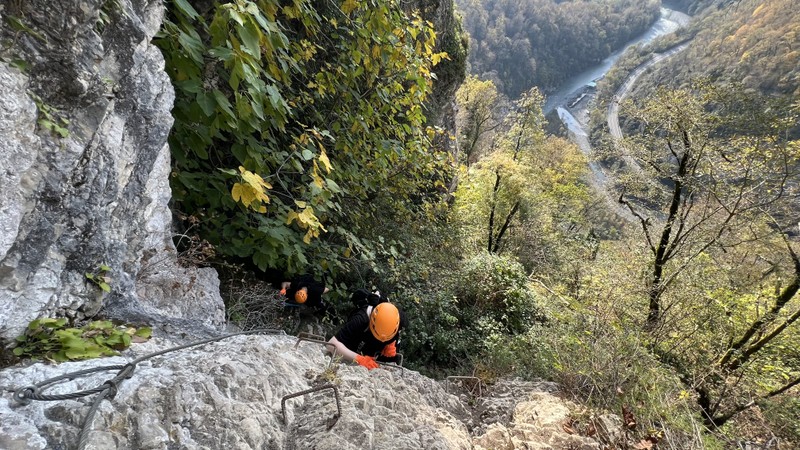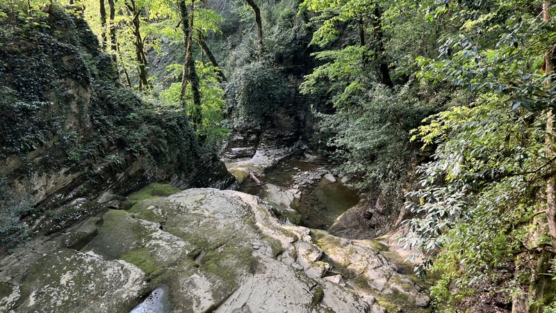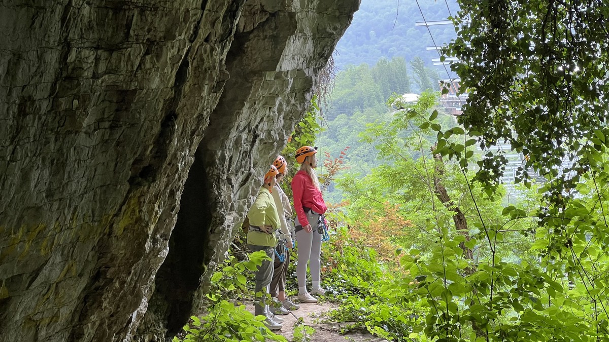 " Предлагаю вам круглогодичный несложный маршрут, который позволяет познакомиться поближе с Красной Поляной и её природными достопримечательностями! За один поход мы поднимемся по ущелью, спустимся в огромный каньон, прогуляемся по самшитовому лесу, найдём вход в широкую пещеру и поднимемся из неё по виа феррате. "