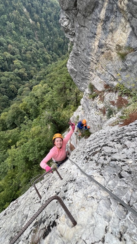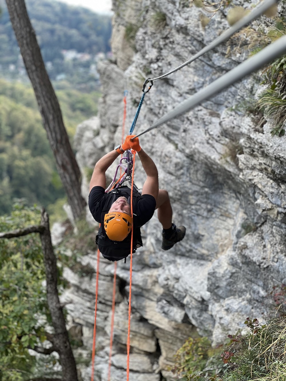 " Если хочется почувствовать себя скалолазом и увидеть Сочи сверху — но без безумного экстрима, вам точно ко мне. Мы пойдём по оборудованному скальному маршруту via ferrata: будем подниматься, проходить узкие полки, заглянем в небольшую пещеру и всё это — со страховкой. Безопасно, красиво и очень запоминается. "