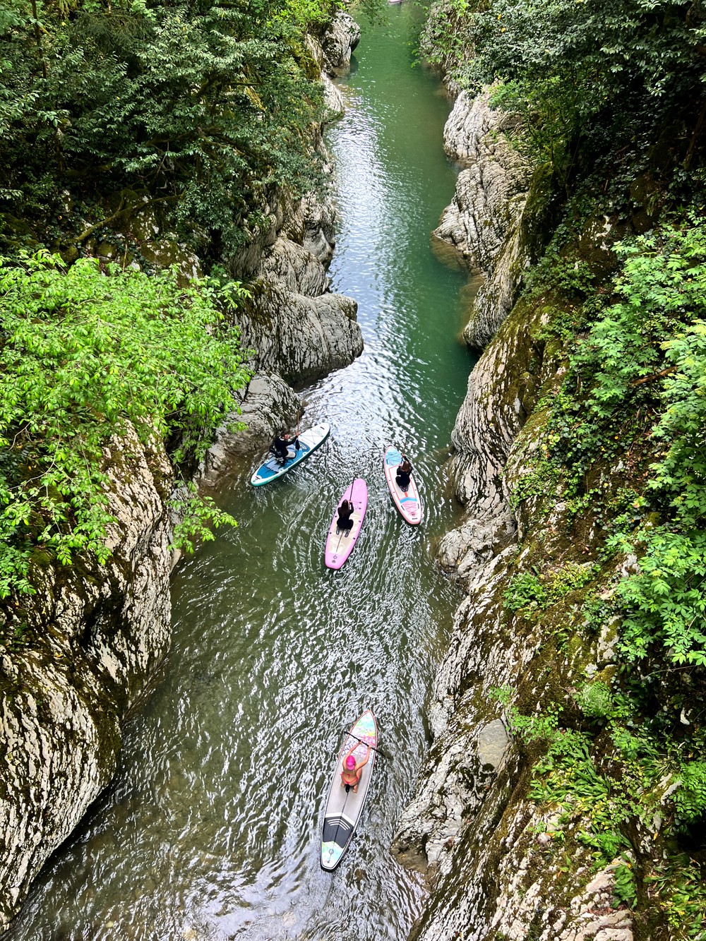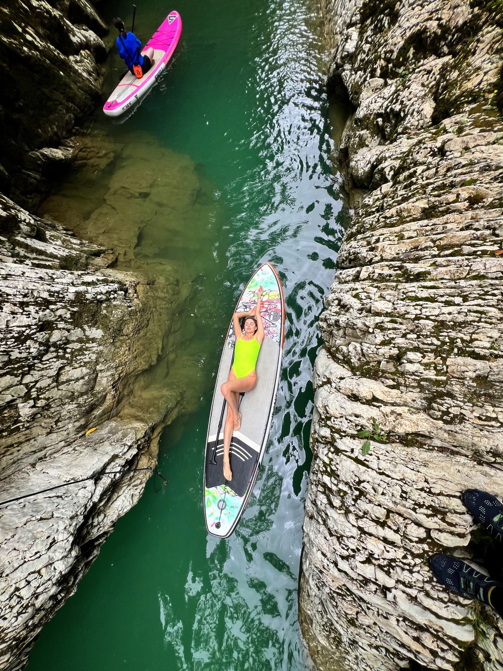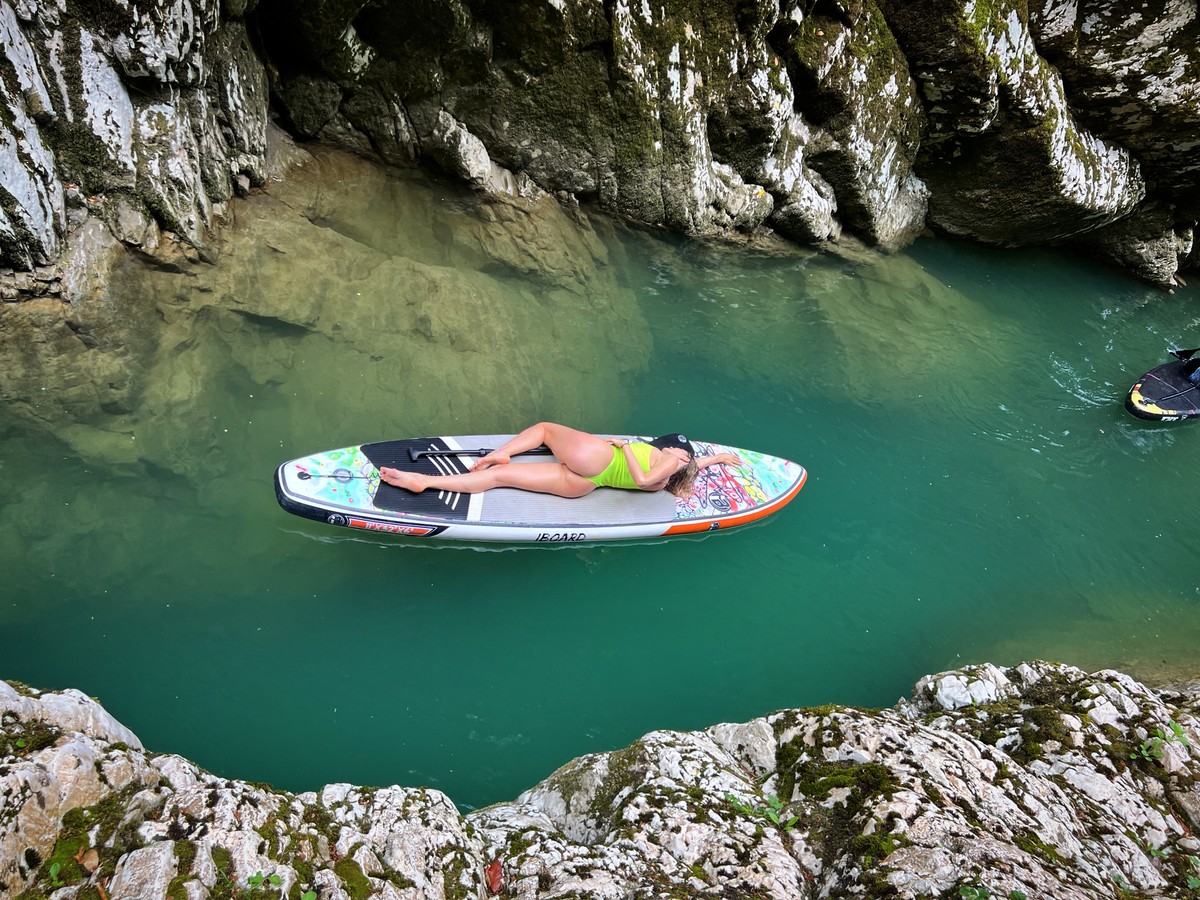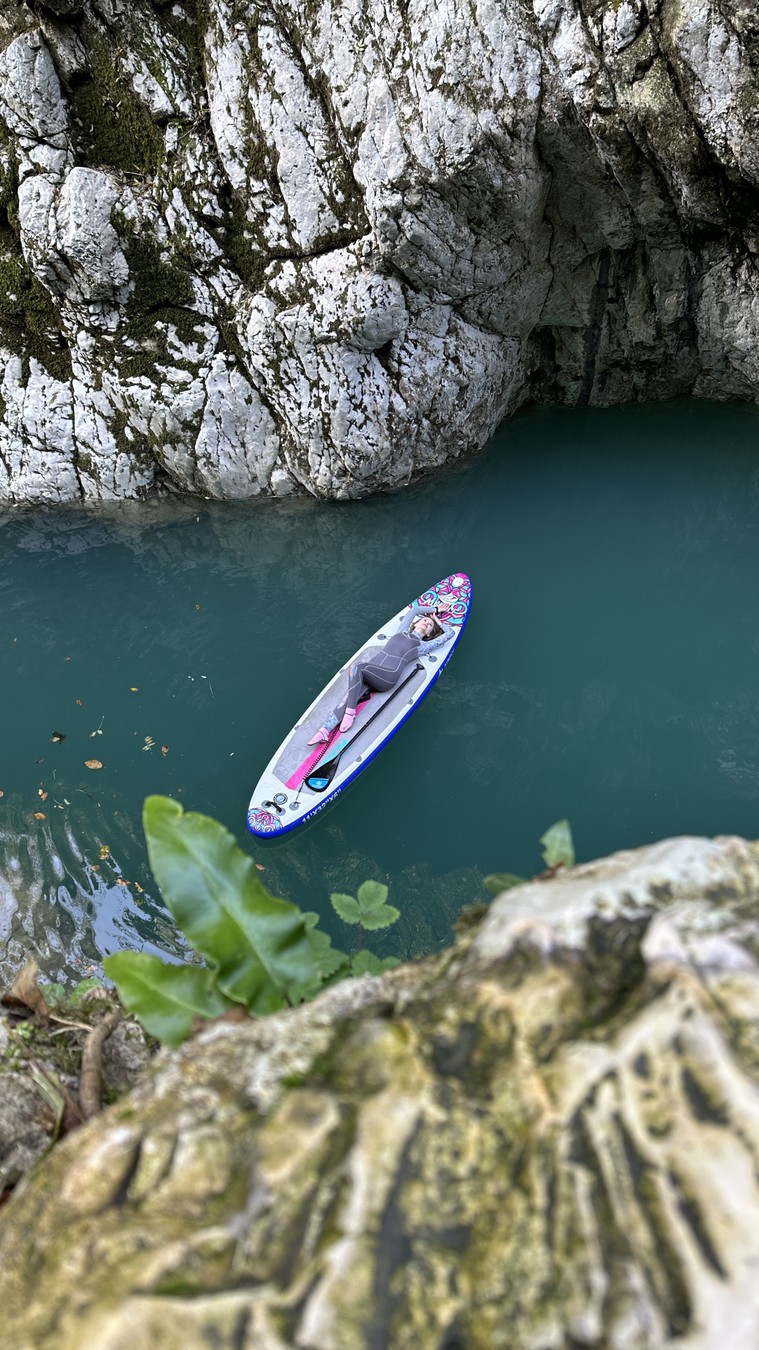 " Круглый год (да, катаемся даже зимой и не замерзаем!) вас ждёт сап-прогулка по живописному каньону, созданному природой. Величество отвесных скал, кристально чистая бирюзовая вода в окружении зелени подарят вам ощущение гармонии и умиротворения. "
