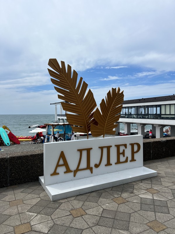 Рассмотрите знаковые монументы: памятники жертвам авиакатастроф и адлерцам, погибшим во время ВОВ, скульптуру рыбки гамбузии, самый старый действующий маяк