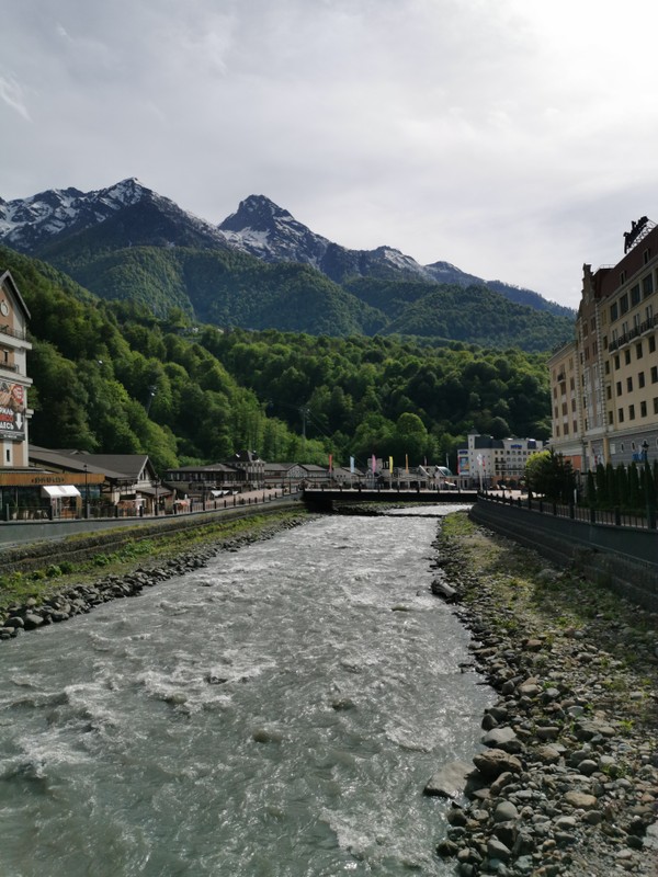 " Цель нашего путешествия — горнолыжный курорт «Роза Хутор». Мы осмотрим его главные символы — Ратушу и набережную. А затем помчим на высоту 1100 метров в горную Олимпийскую деревню по дороге, которая ведёт через старый посёлок Красная Поляна. По пути сделаем несколько фотостопов в живописных ущельях. "