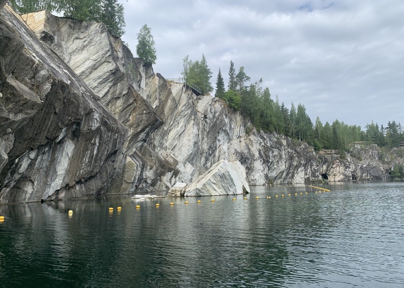 - Дикий мраморный карьер Рускеала 2. Здесь нет толп туристов, оград и сувенирных магазинов. Только огромный карьер, который разрабатывали в советское время. От былой добычи остался высокий террикон из дроблённого мрамора. Вы увидите настоящие мраморные каньоны,так как мраморная крошка размывается осадками. На это уйдет около 45 минут.