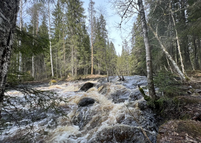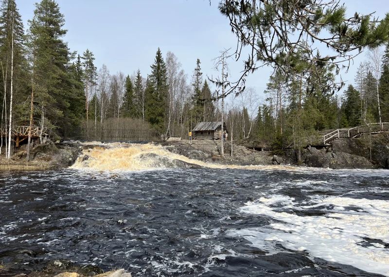 - После мы отправимся к дикому безымянному порогу неподалеку. Он даже превосходит предыдущие водопады по красоте. В этой локации практически не бывает туристов. Также вы увидите останки старой финской ГЭС.