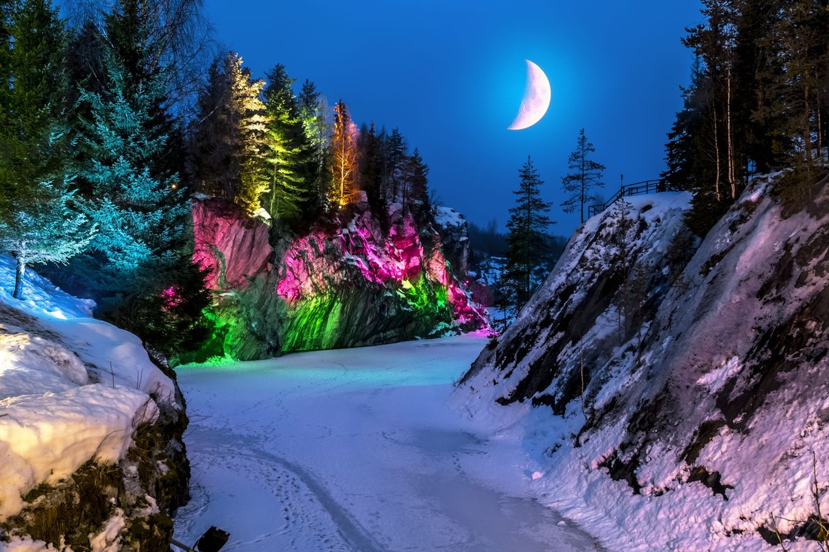 Рускеала — невероятно красивый и современный парк, отражающий природное величие Северного Приладожья. Вы погуляете по оборудованным тропам, полюбуетесь со смотровой площадки Мраморным каньоном и узнаете самые значимые моменты его трехвековой истории. А также увидите заброшенный мраморный завод, построенный финнами в конце 19 века.