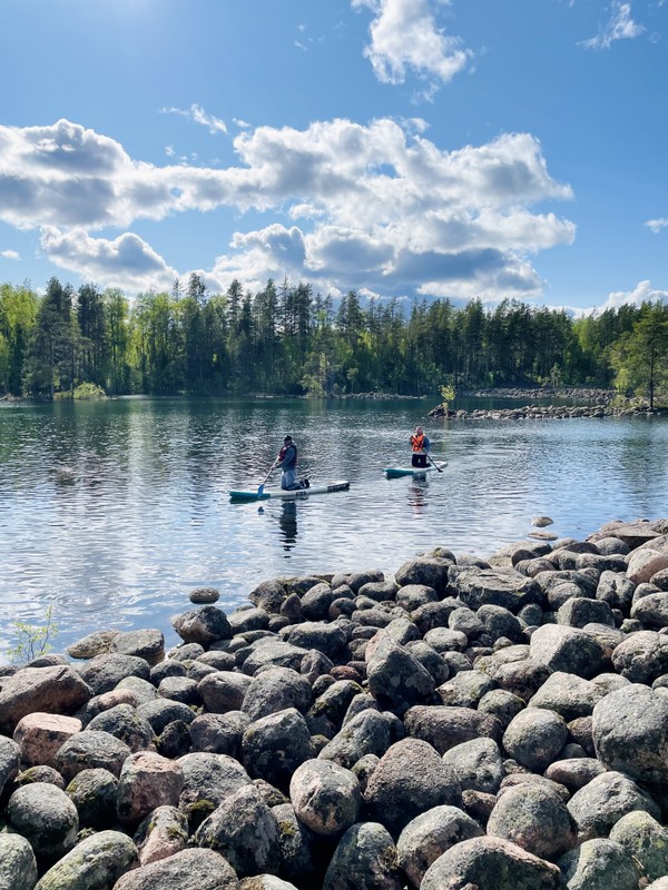В стоимость включён трансфер из Ууксу до места начала сап-прогулки, аренда сап-бордов, спасательные жилеты, чай с калитками