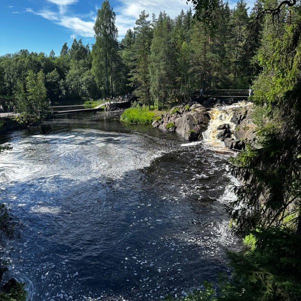 Водопады Ахинкоски. Пройдёте по подвесным мостам, насладитесь шумом карельской воды, попробуете при желании морошковое варенье и иван-чай.