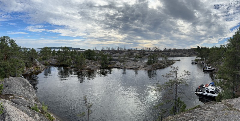 Мы проплывём по лабиринту скалистых островков, протяжённых мысов и узких проливов. Эти выточенные ледниками и временем берега создают пейзаж, похожий на скандинавские фьорды — дикий, мощный, но удивительно гармоничный. Сочетание прозрачной воды, гранитных скал, сосновых лесов и абсолютной тишины создаёт почти медитативное ощущение.