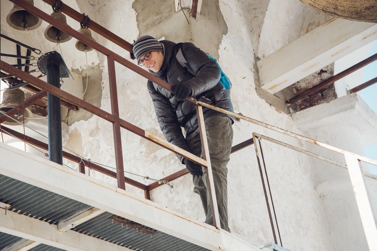 - Сверите время по древним часам и отыщете «гвоздь» у храма, построенного без единого гвоздя