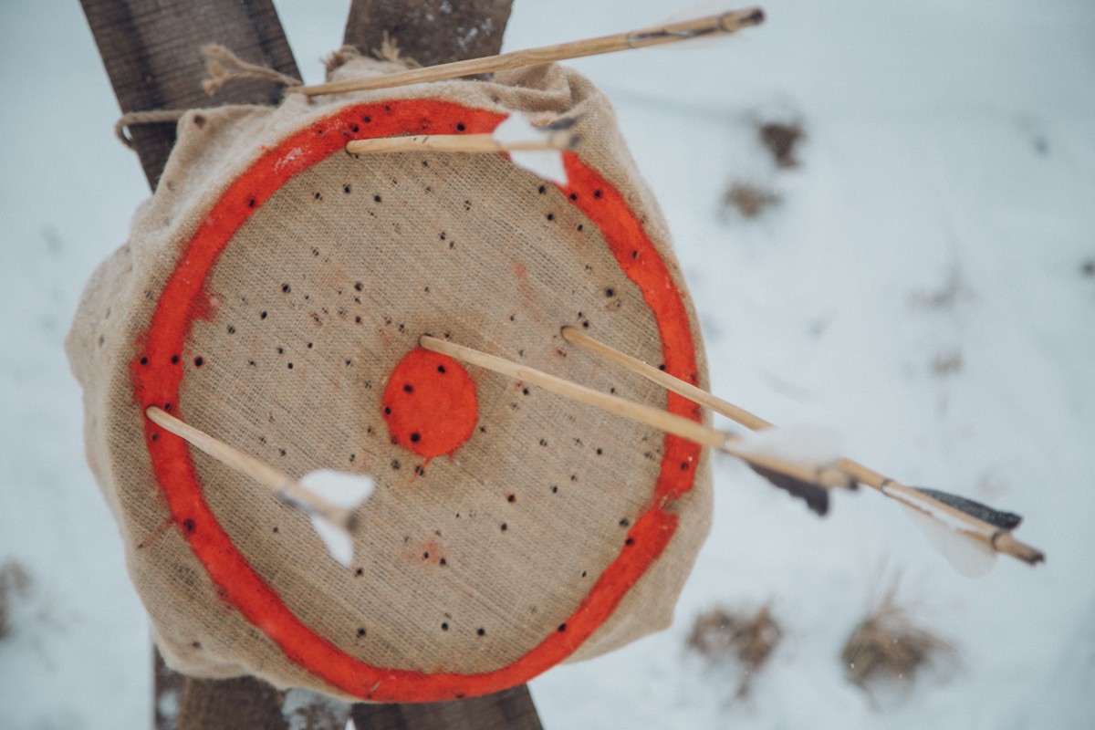И вот у вас в руках деревянный английский лук, выполненный из цельного клена с плетёной тетивой из льна. Стрелы с металлическими наконечниками изготовлены вручную. Всё точно так же, как в древности. Пора переходить к практике!