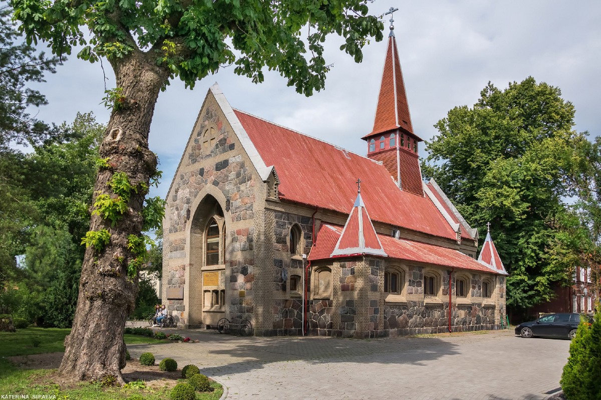 - Исторический центр Янтарного. Вы начнёте прогулку у лютеранской кирхи 19 века, увидите здание отеля «Шлосс» и почувствуете атмосферу старого прусского курорта