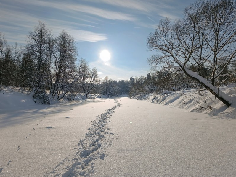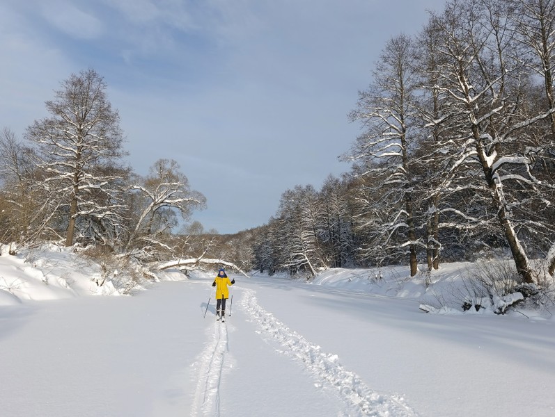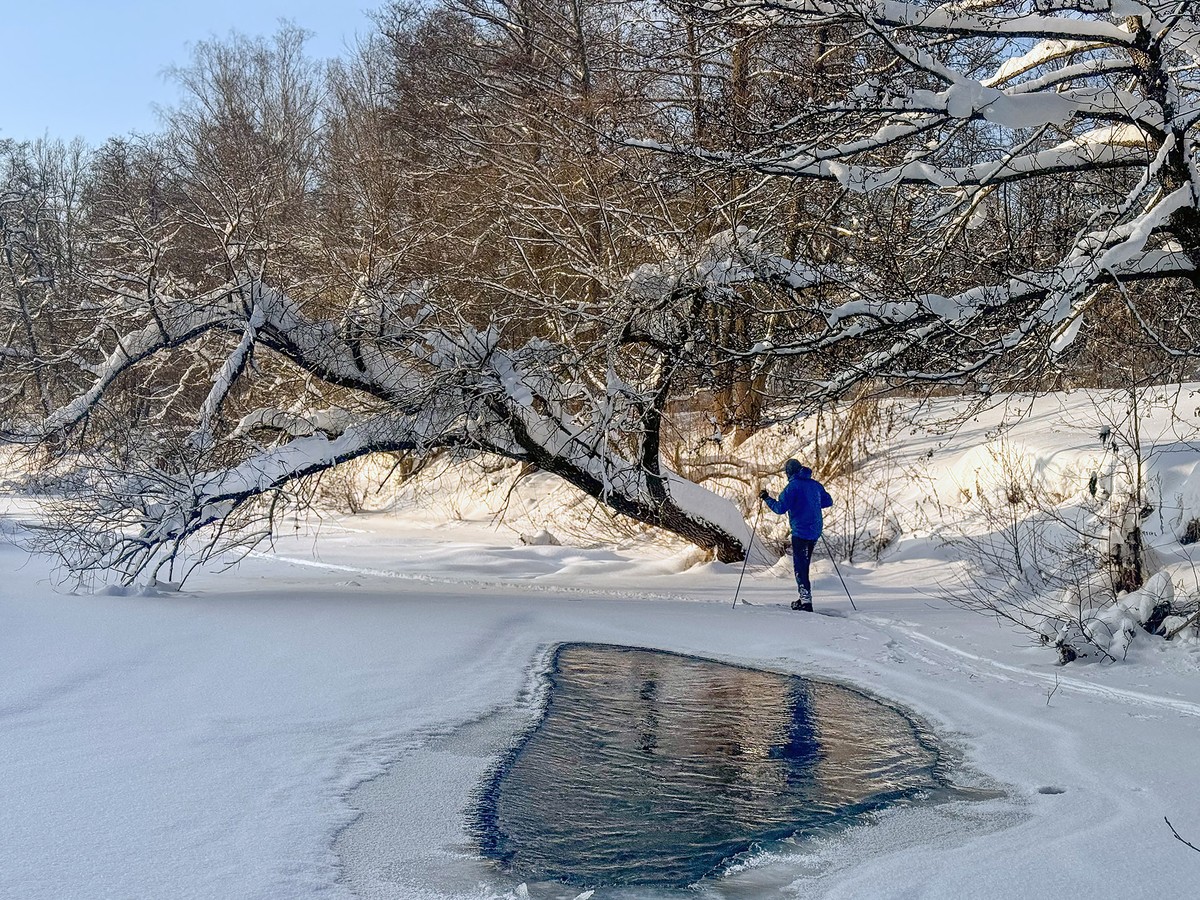 Лыжная прогулка по застывшей реке — в Тарусе
