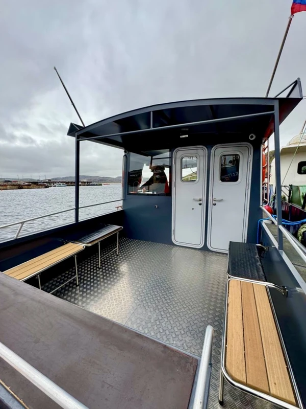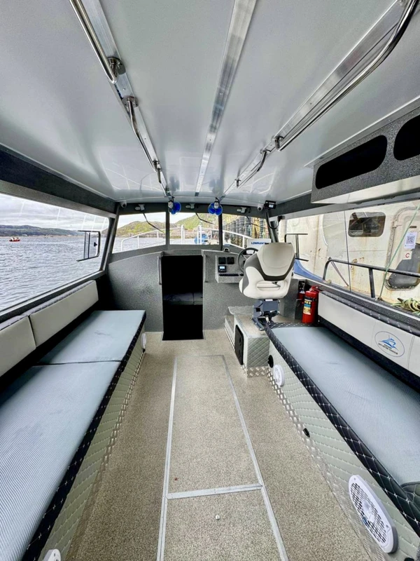 Система стабилизации гарантирует плавный ход даже на волне. Полное оснащение: туалет, чай и кофе, спасательные жилеты для всех. Просторная палуба для наблюдений и большая отапливаемая каюта с панорамными окнами 360°, откуда открываются виды в любую погоду.