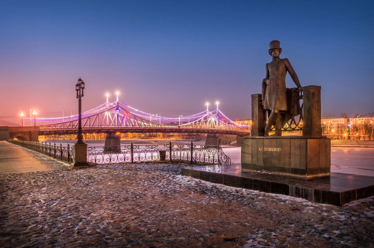 Шаг за шагом мы обойдём самые интересные и знаменитые символы Твери: вы побываете на площади Ленина и послушаете там легенду о несметных сокровищах под постаментом, а также попробуете отыскать сходство в двух памятниках Пушкину. Погуляете по любимому месту отдыха тверичан — городскому саду с необычным памятником рыбаку. И полюбуетесь мостами через Волгу.