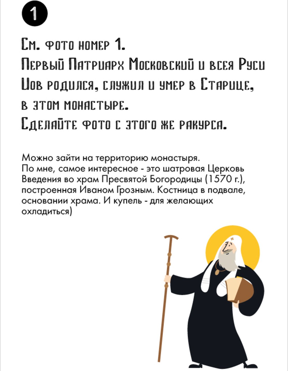" Хотите отдохнуть от шумного мегаполиса? Любите новые места и пешие прогулки? Приглашаю вас в Старицу. Я не гид и не историк, а лишь человек, влюблённый в город детства, куда приезжаю к бабушке 34 года подряд. Моя любовь к Старице, книги и интернет помогли мне составить этот квест. Будут интересные факты, городские пейзажи в стиле «обшарпэ» и пикник с кофе на берегу Волги. "