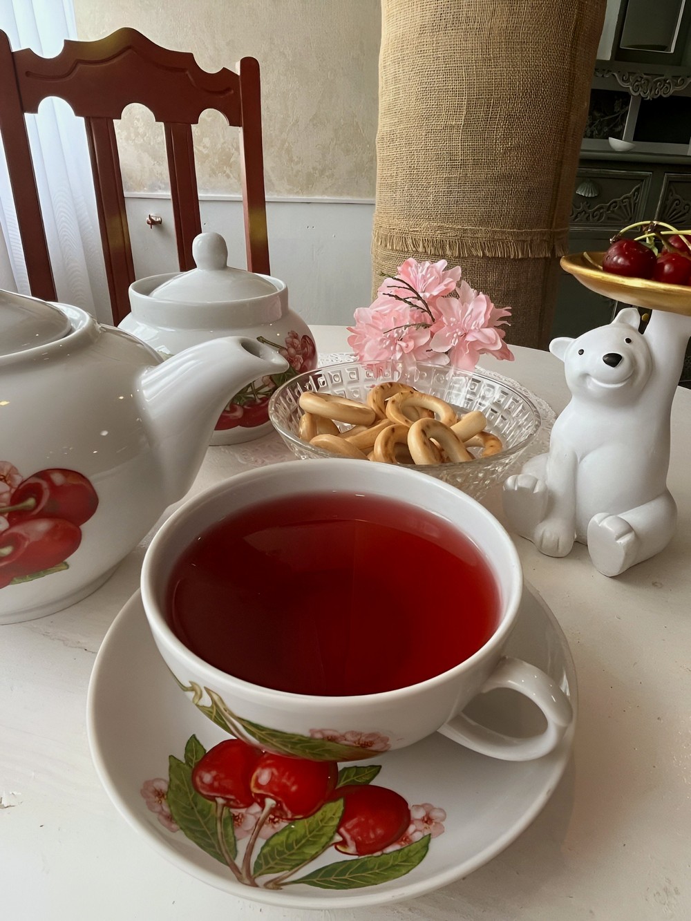 - А после насладитесь чаем с вишнёвым вареньем и хрустящими баранками