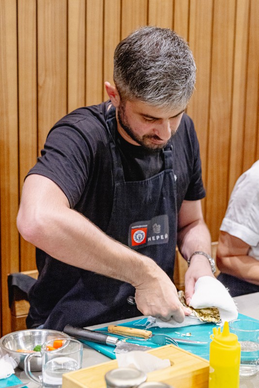 " Мы собрали свежайшие дары моря и тайги, чтобы вы смогли почувствовать Дальний Восток на вкус. На мастер-классе вы научитесь открывать гребешок и устрицу, приготовите тартар из нерки, удивитесь органичности сочетания азиатской гречневой лапши и оленины. Вас ждёт вечер-открытие — новые гастрономические вкусы под винное сопровождение в приятной компании. "