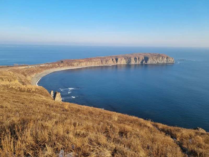 - Мыс Шмидта и бухта Карпинского. Спустимся пешком с самого высокого мыса острова до живописной бухты Карпинского