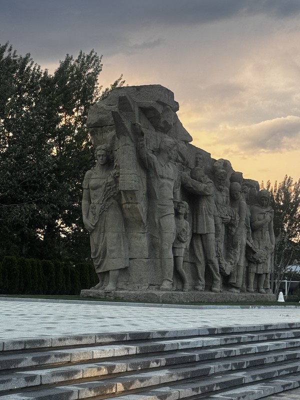 - Вернёмся в город и поднимемся на Мамаев Курган — он открыт круглосуточно и в вечерней подсветке особенно величествен