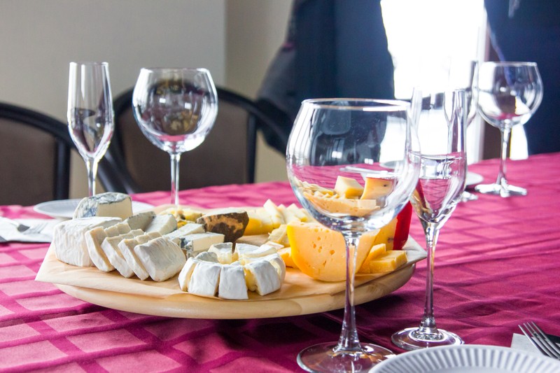 - Винная дегустация: 5-6 сортов вида + лёгкие закуски (сыр, крекеры)