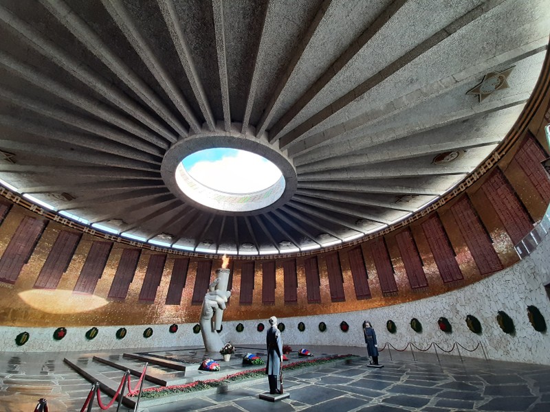 За «командную высоту» бои продолжались с 14 сентября 1942 г. до 26 января 1943 г. На Мамаевом кургане, помимо осмотра памятника-ансамбля «Героям Сталинградской битвы», мы поговорим о ключевых эпизодах сражения за высоту 102, об известном снайпере Василии Зайцеве и повести Виктора Некрасова «В окопах Сталинграда». Будет небольшая остановка у памятника-скульптуры Михаилу Паникахе.