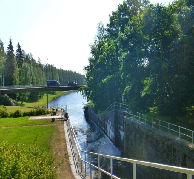 Сайменский канал до сих пор остаётся важной транспортной артерией. Вы пройдёте по старинному шлюзу Лавола 1856 года и осмотрите действующий шлюз «Брусничное». Если будет удачный момент, застанете завораживающий процесс шлюзования корабля.