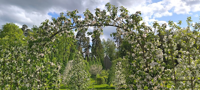 Вы полюбуетесь плодовым формовым садом, возрождённым усадебным домом и Китайскими мостиками.