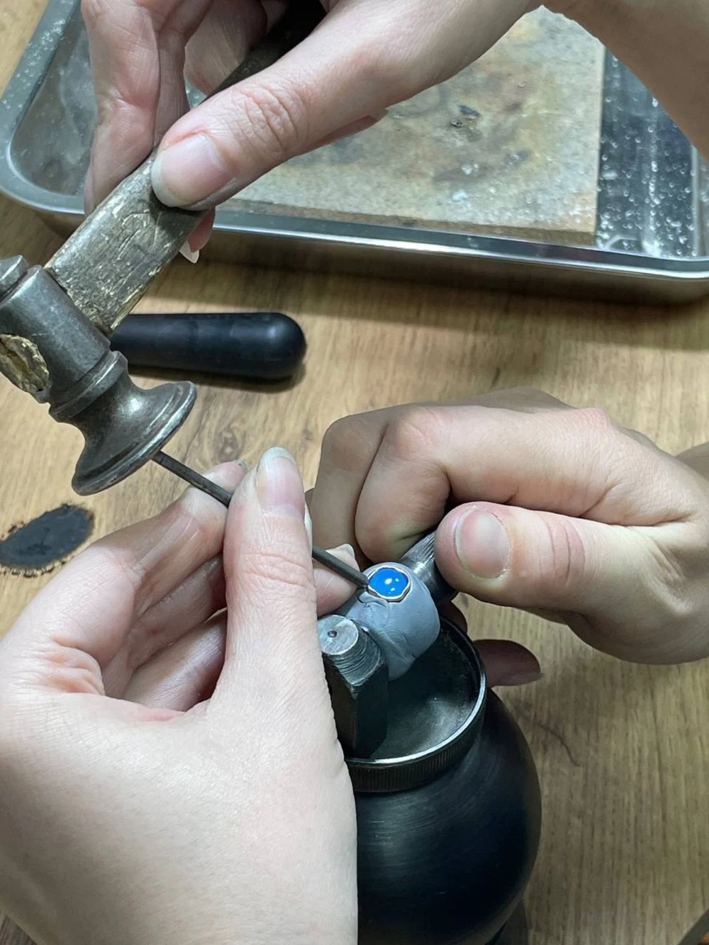 Под руководством опытного ювелира вы самостоятельно выполните некоторые операции — пайку, шлифовку, закрепку, гравировку, нанесение фактуры.