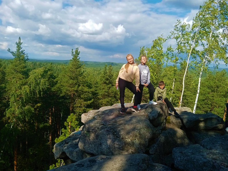 Мало кто знает, что в полутора километрах к северу от Семерых братьев находятся не менее красивые скалы Три сестры. Расположены они в густом лесу, высота их 25-30 метров. Забравшись на скалы, вы оцените новые вдохновляющие пейзажи уральской природы. А я расскажу, что за древние святилища были здесь обнаружены.