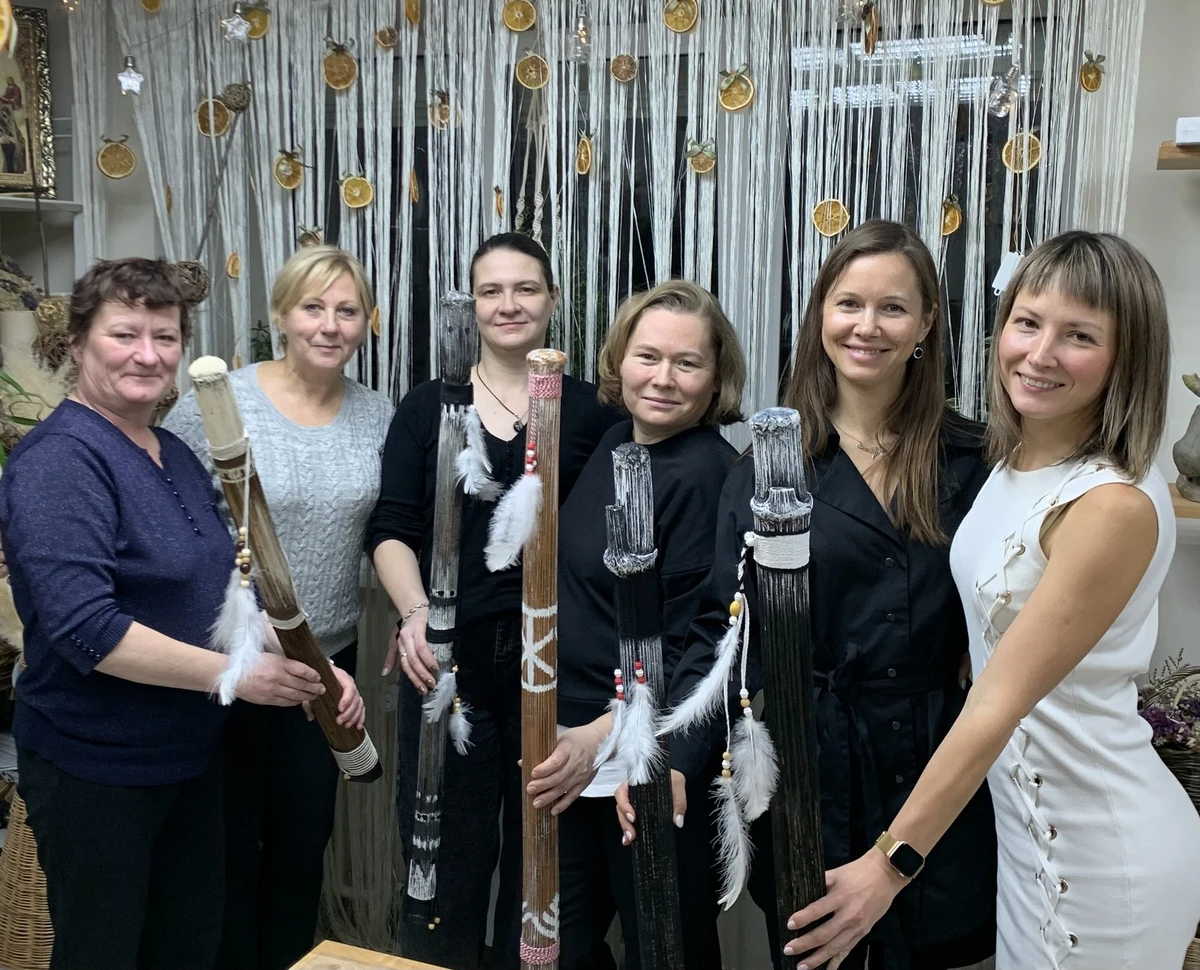 На мастер-классе вы услышите историю возникновения этого предмета. Познакомитесь с природными материалами, с которыми будете работать. Узнаете, как достичь нужного звучания, как украсить посох. И создадите собственный инструмент.