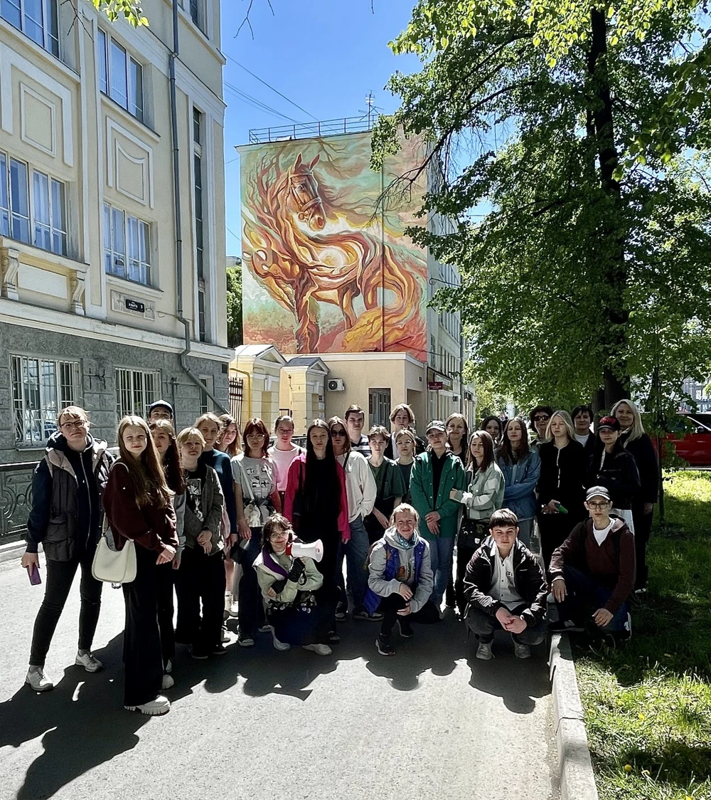 Сразу начнём фланировать в динамичной городской среде — проникать во дворы, сворачивать в закоулки, спускаться в переходы — и учиться выявлять объекты уличного искусства. Иногда для этого нужно смотреть не только по сторонам, но и вверх, и себе под ноги! А обнаружив — обсуждать и выявлять новые смыслы.