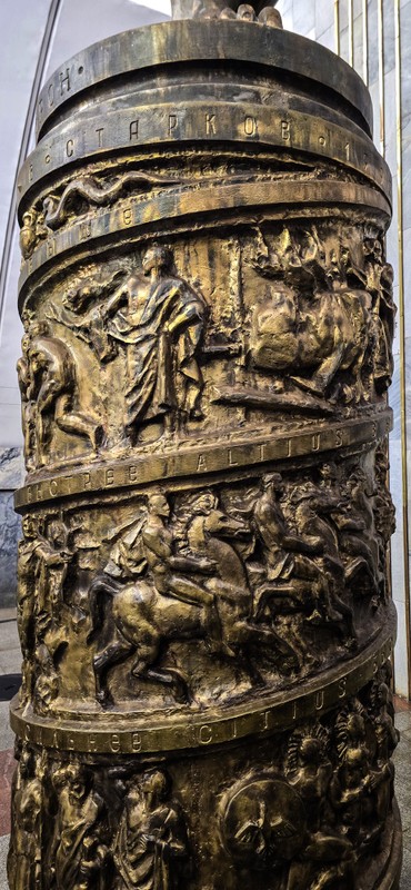 На «Уралмаше» и «Машиностроителей» стены украшены чугунными панно с рабочими у станков и солдатами ВОВ — редкий пример индустриального искусства в метро.