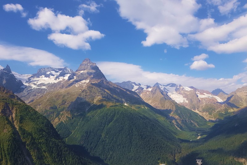 Приготовьтесь взлететь по канатной дороге на гору Мусса-Ачитара — это самый доступный для подъема «трехтысячник» России. С высоты 3200 метров н.у.м. вы полюбуетесь захватывающими дух панорамами. А затем попадете в другое известное место — на Домбайскую поляну, где соединяются ущелья Алибек, Аманауз и Домбай-Ульген. Здесь над низкими лесистыми склонами поднимаются ввысь восемь седых горных вершин, а вокруг вас альпийские луга.