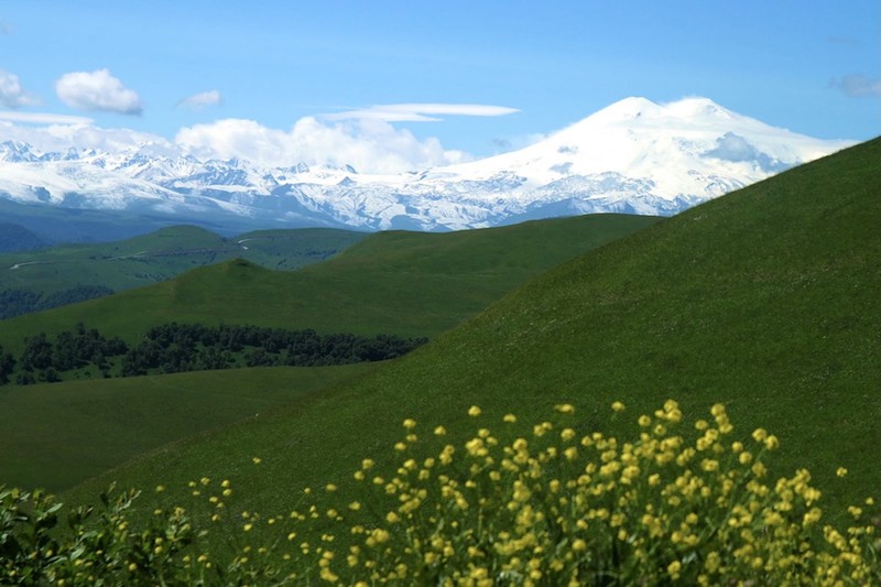 Отправляемся в урочище Джилы-Су на северном склоне Эльбруса — край, который славится термальными источниками. Название урочища и переводится как «тёплая вода». Первую остановку сделаем на горе Шаджатмаз, чтобы на высоте 2100 м полюбоваться Большим Кавказским хребтом.