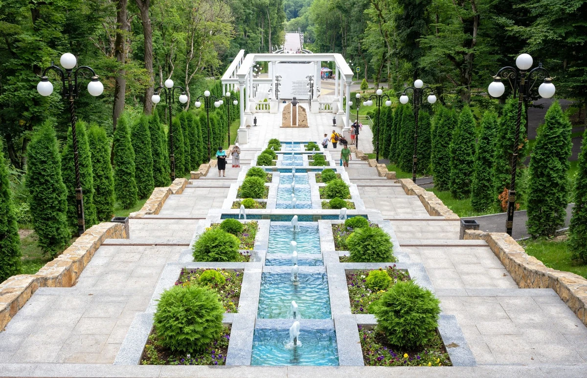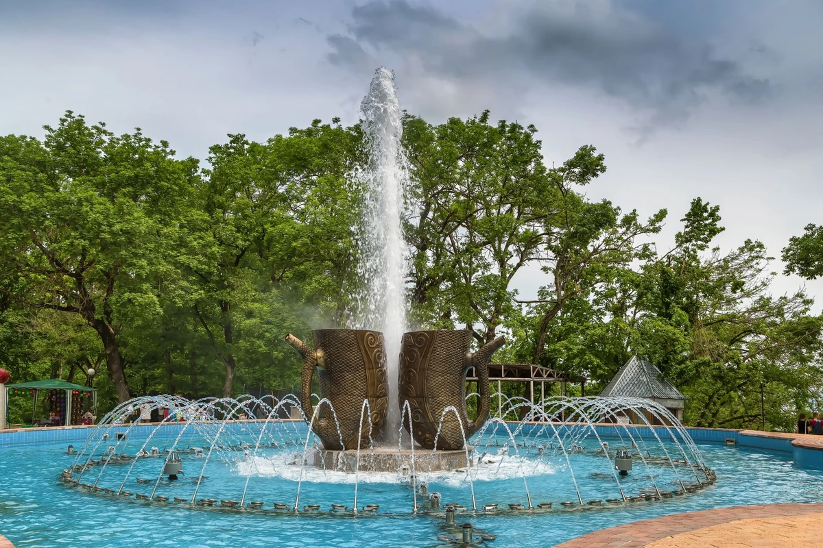 Центральный фонтан с мощными струями из бюветниц — сердце курорта