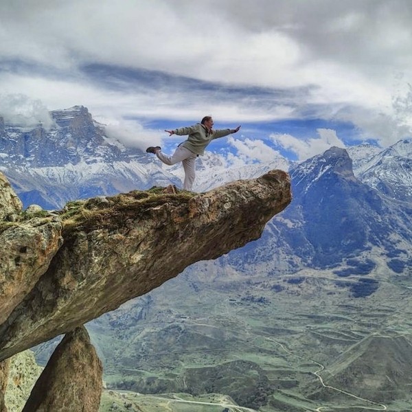Язык Тролля. Этот скальный выступ в Безенгийском ущелье добавит нотку экстрима в наше путешествие. Смельчаки залезут на него и сделают эффектные снимки. Также отсюда открываются потрясающие виды на горы.
