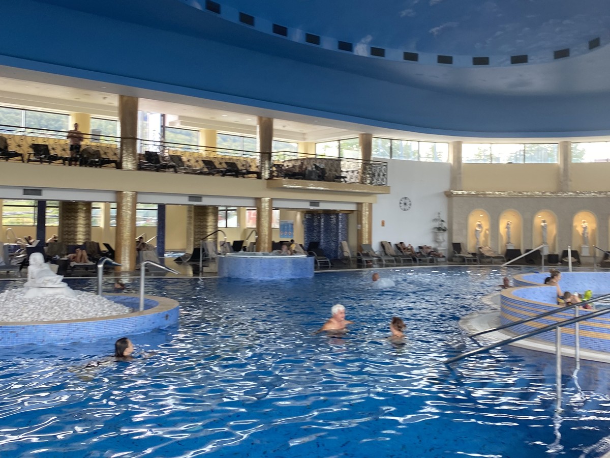 Мы отправимся в одно из таких мест — отель Извор, который располагает девятью бассейнами с минеральной водой от 30 до 38 градусов; релакс-комнатой с гималайской солью; паровой, русской и турецкой банями; био- и финской сухой саунами, римской ванной, душем для стимулирования кровообращения и тепидариумом (особые теплые скамейки). Также здесь предлагают несколько видов массажа и другие омолаживающие процедуры, а летом работает аквапарк.