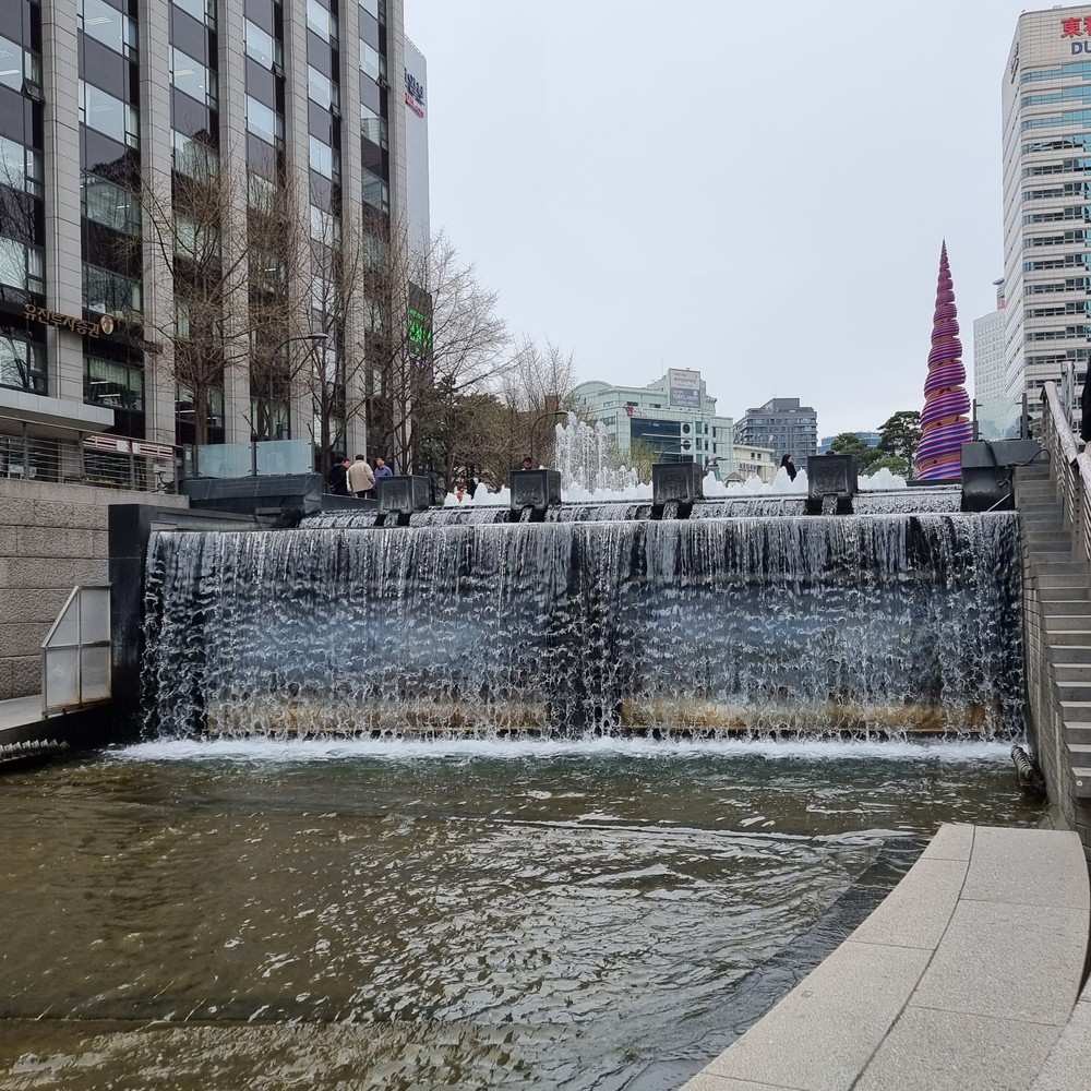 Минутка кей-попа. Прогуляемся вдоль ручья Чхонгечхон до культурного центра, где находится большая медиастена и можно получить опыт съёмки музыкальных клипов в стиле К-pop: выбрать реквизит, песню, установить свет.