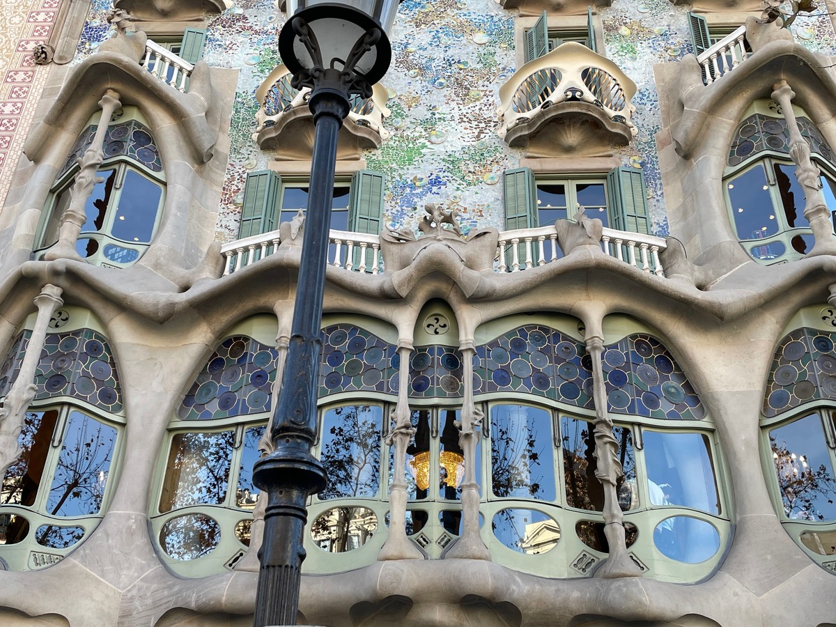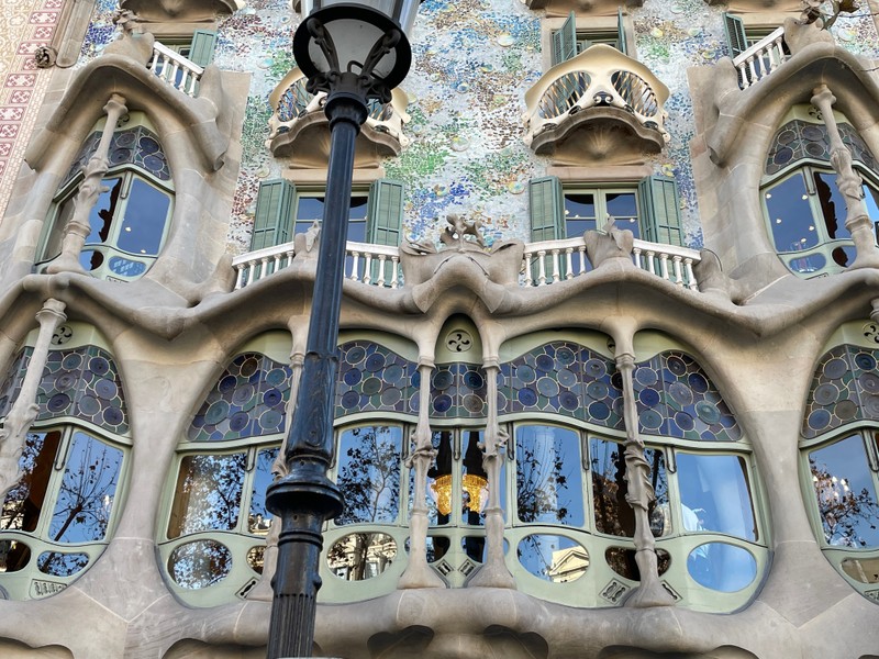 - Дом Бальо — самое необычное строение в городе. Его выпуклые неровные формы рушат все представления о строительстве. Вы услышите, как дом Бальо связан с каталонской легендой о покровителе Барселоны Сан Жорди, победившем дракона, и почему хозяйка дома так и не поняла мысль художника.