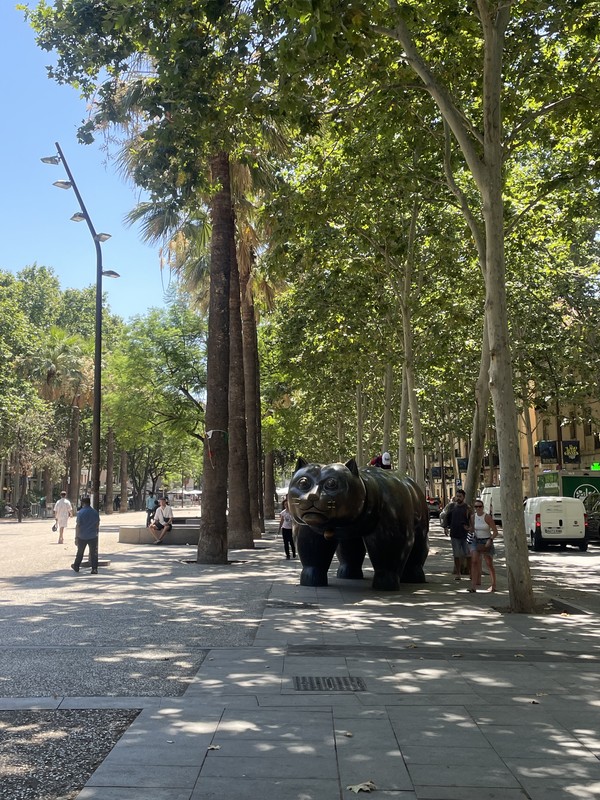 - Рамбла. Самая туристическая улица Барселоны со множеством исторически и художественно интересных деталей — домом с зонтиками, мозаикой Жоана Миро и работой местного современного артиста Жаумэ Пленса.