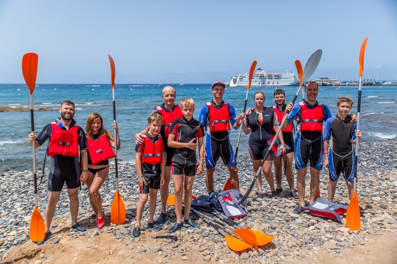 - Маршрут от Лос-Кристианос вдоль побережья — спокойный темп, живописные виды, 30–40 минут на каяках