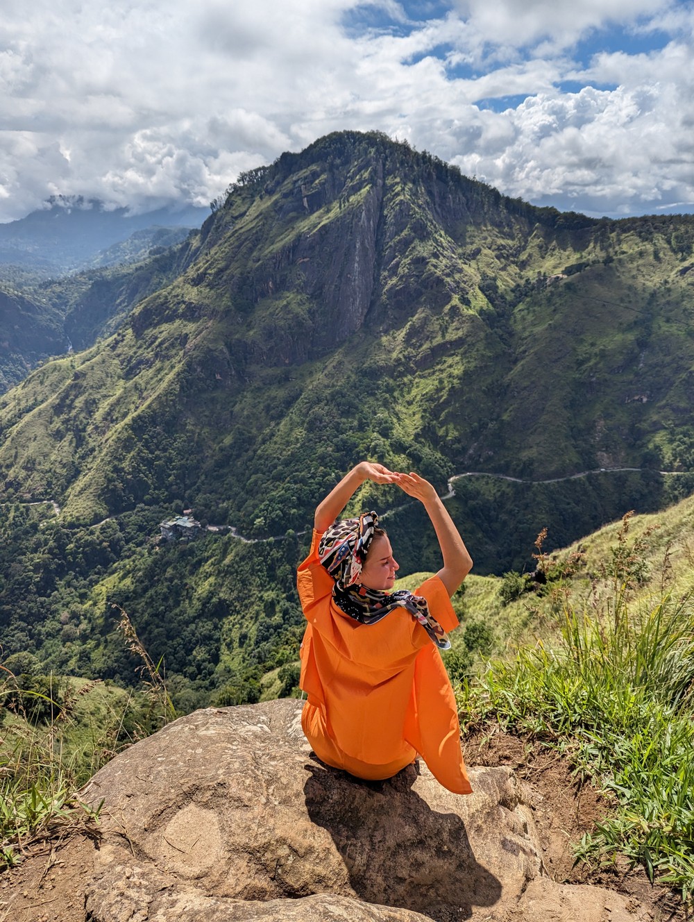 10:15–11:15 — прогулка через чайные плантации на Малый пик Адама: шикарный вид на Элла рок, серпантин дорог, водопад Равана, чайные плантации и зелень соседних холмов