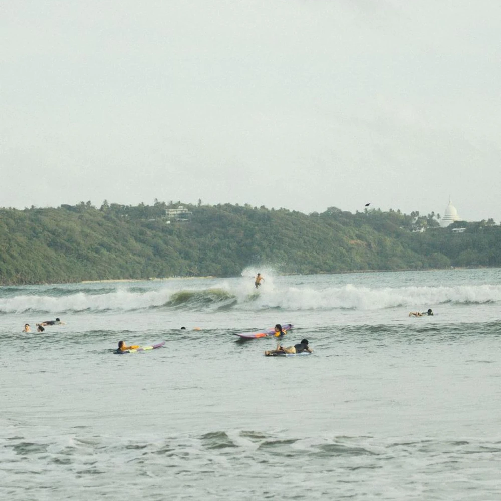 " Поймайте волну на Шри-Ланке! С нами вы встанете на доску с первого раза. Занятие проходит в тёплом океане под руководством сертифицированного инструктора и подойдёт даже для новичков. Всё необходимое включено. "